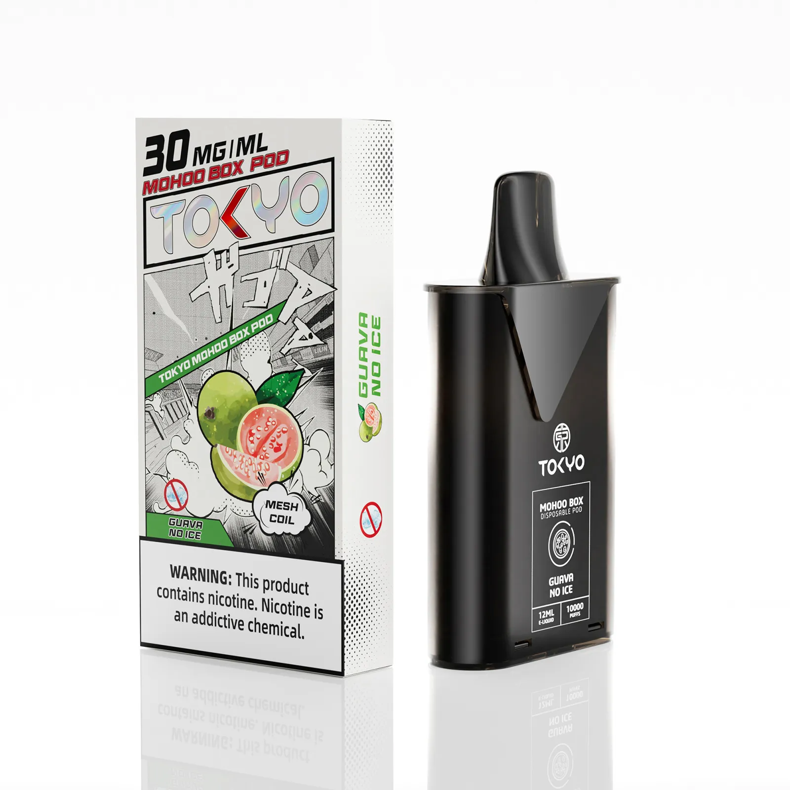 東京魔盒電子煙煙彈採用植物甘油與丙二醇基底,搭配高純度尼古丁鹽,容量 12 mL、尼古丁濃度 3%(30 mg/mL),搭載 1.0Ω 鋼網棉霧化芯。一次性 pod 設計,約 10,000 口,吸力持久,方便攜帶與日常使用。